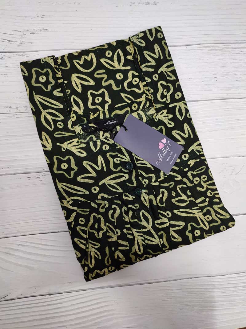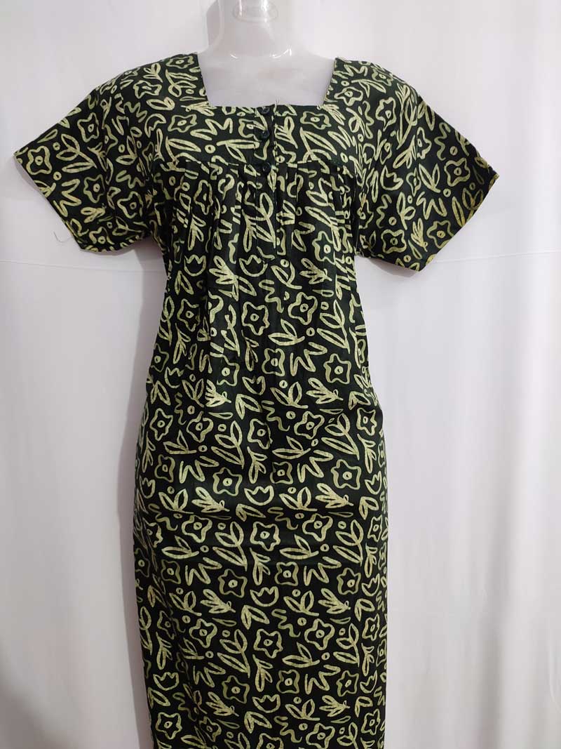 Front Open Cotton Nighty With Buttons, 55 Inches Long – Green