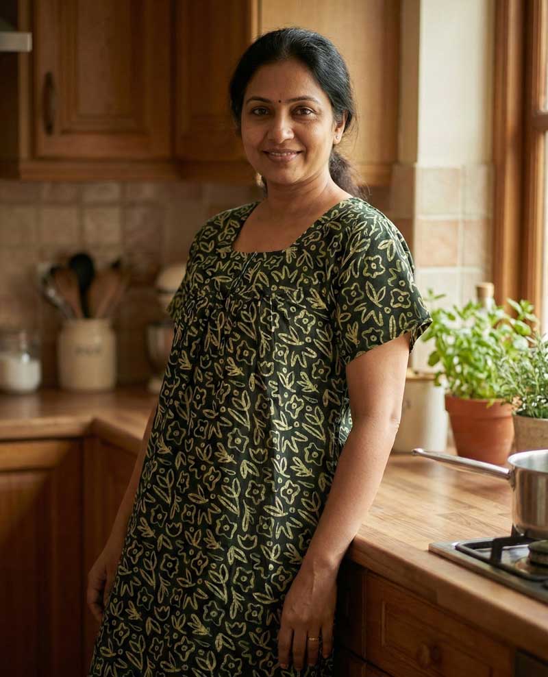 This nighty can be hand washed or a normal machine washed with cold water. Please make sure to dry the nighty in a light shade away from direct sunlight.