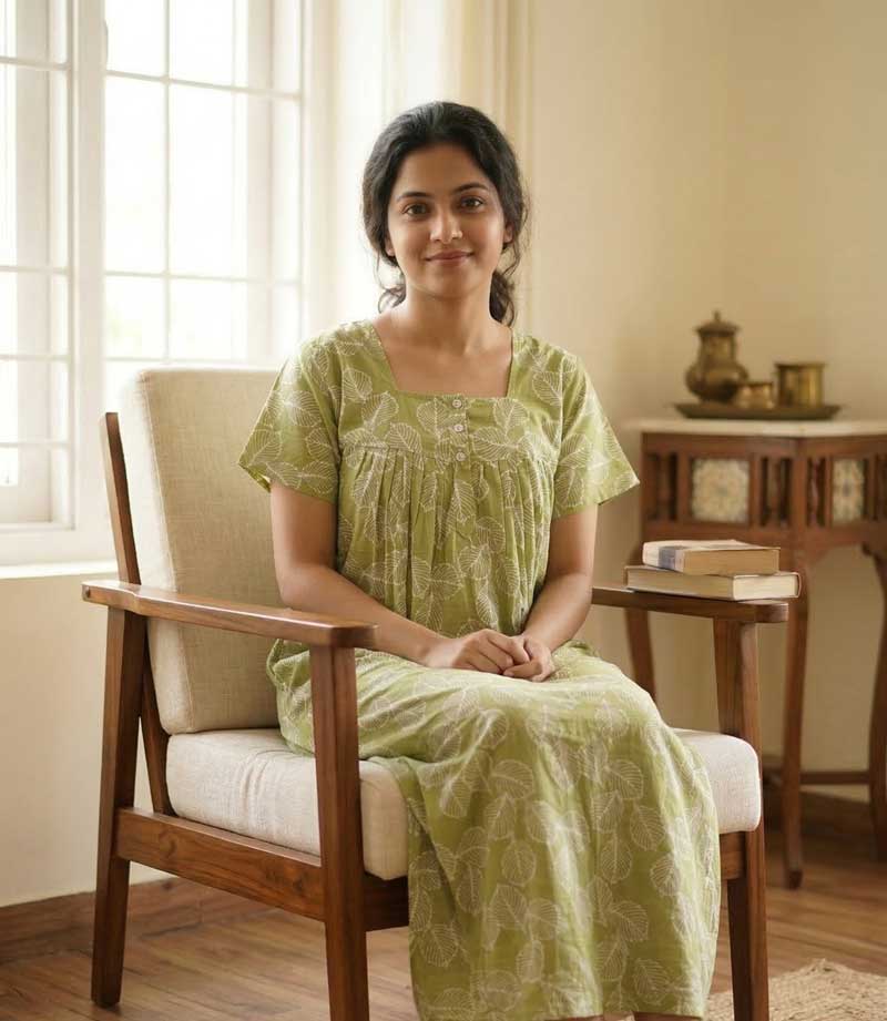 Premium Cambric Cotton Nighty With Long Sleeves – Buttons Type