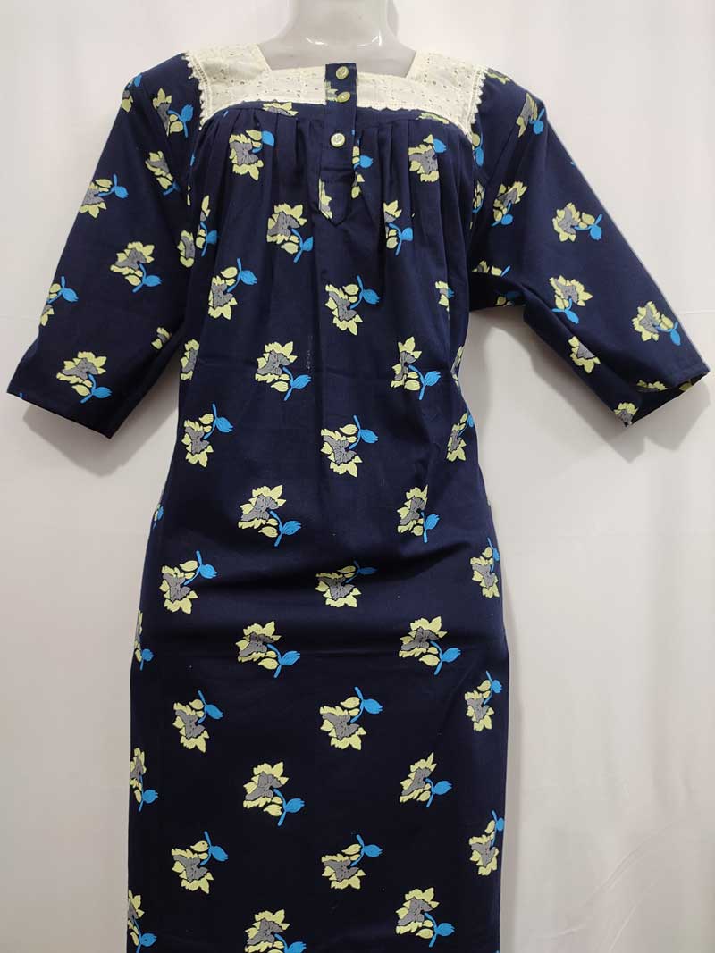 This nighty can be hand washed or a normal machine washed with cold water. Please make sure to dry the nighty in a light shade away from direct sunlight.