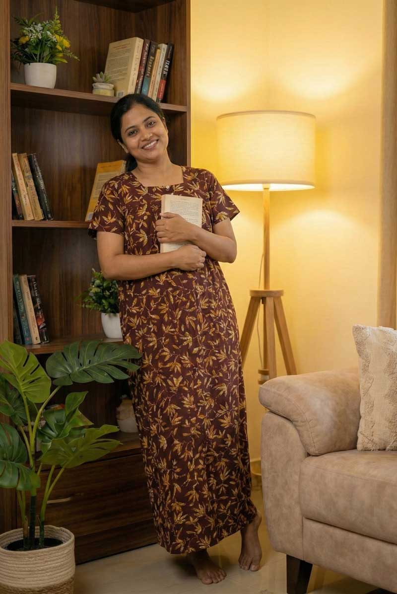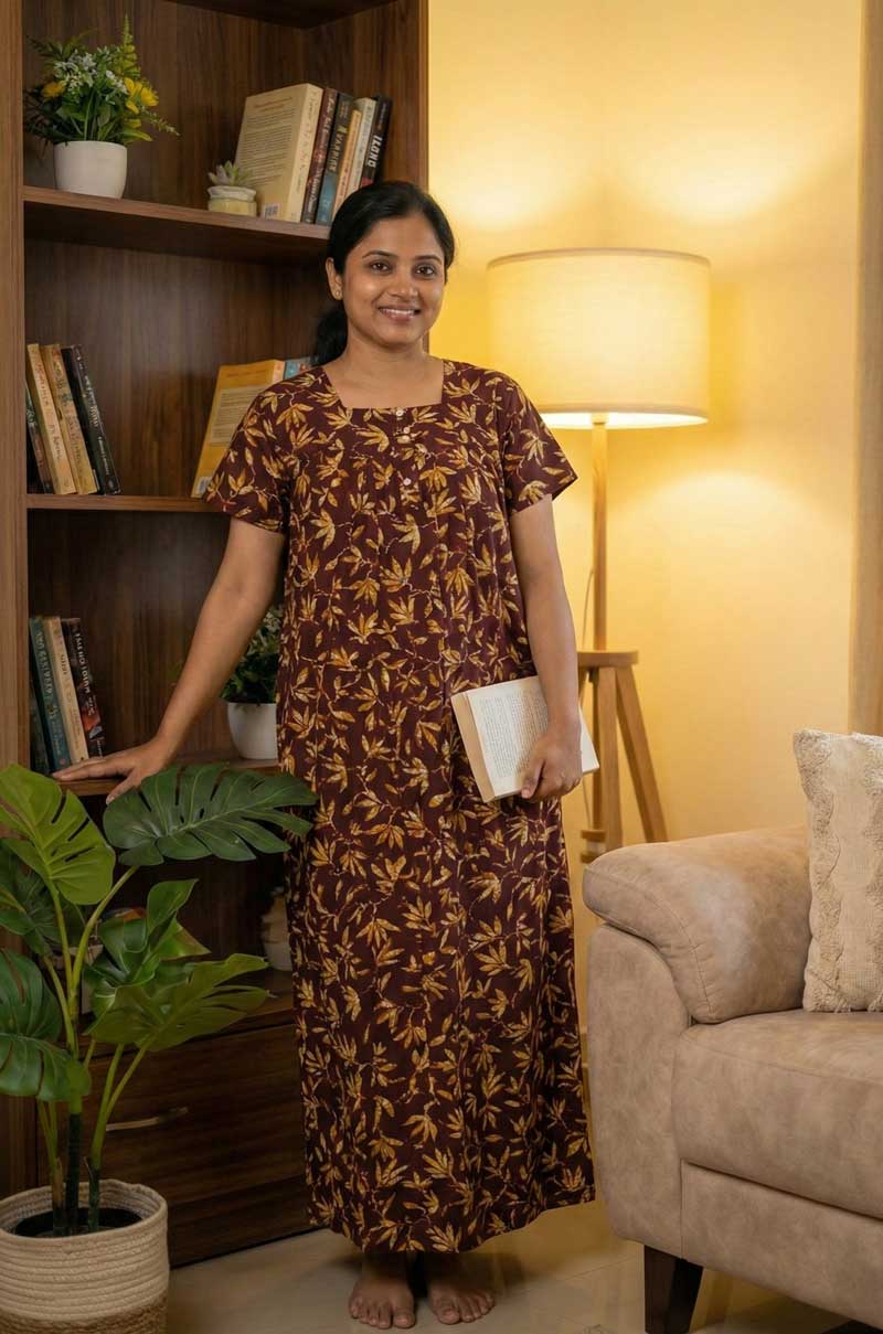 ₹489Comfortable Cotton Nighty With Buttons, 57 Inches Long – Rose