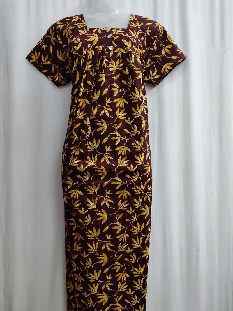 Comfortable Cambric Cotton Nighty With Buttons -55 Inches Long