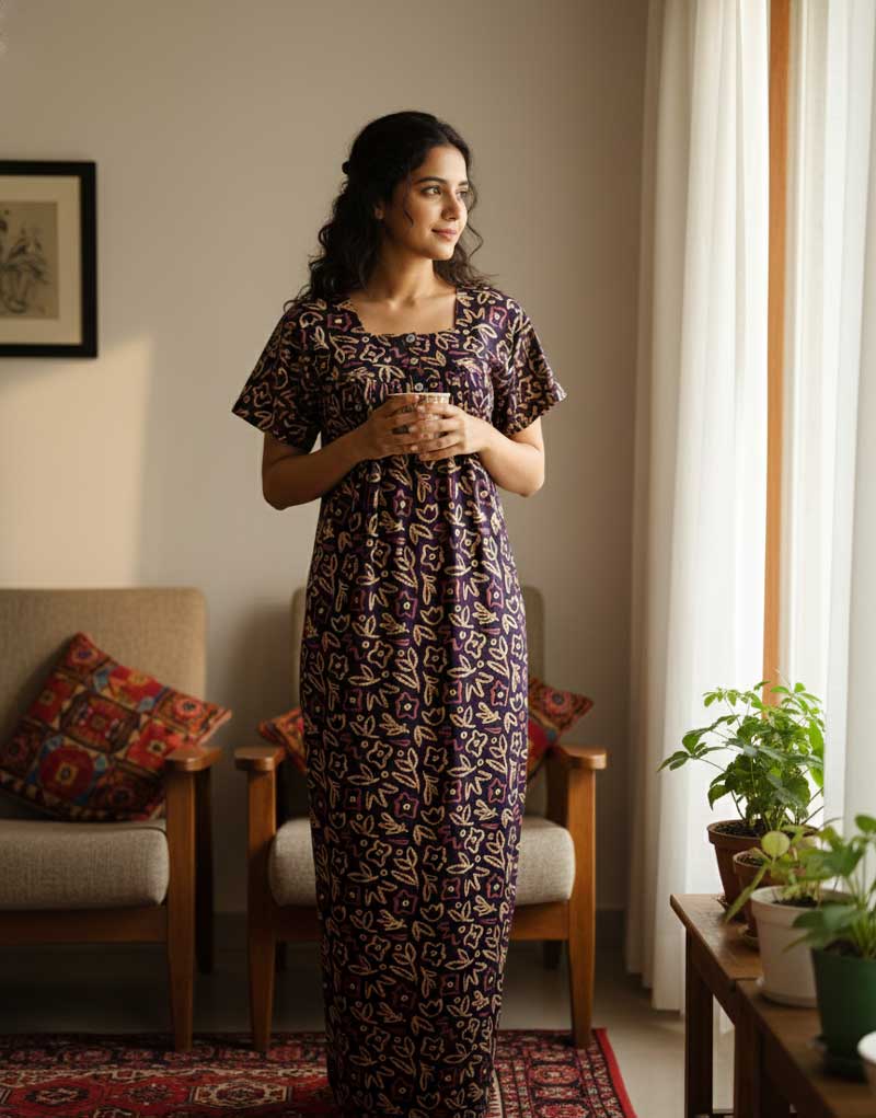 Comfortable Traditional Cotton Nighty – 55 inches long