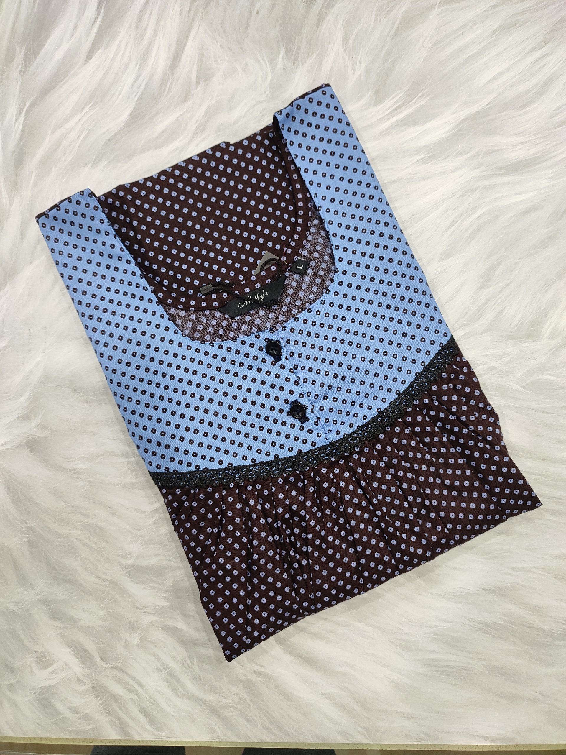 This nighty can be hand washed or a normal machine washed with cold water. Please make sure to dry the nighty in a light shade away from direct sunlight.