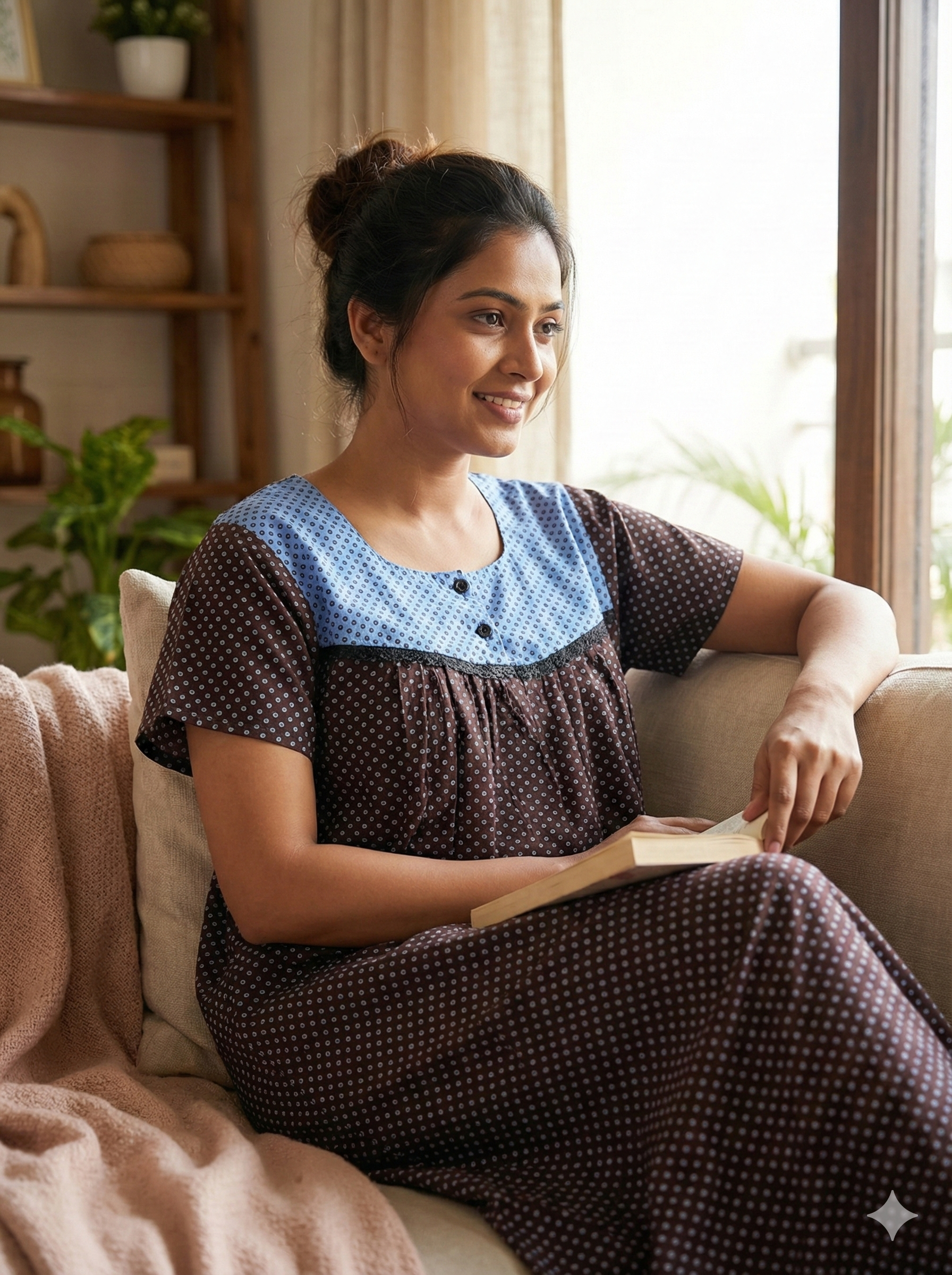 Comfortable Traditional Cotton Nighty – 55 inches long