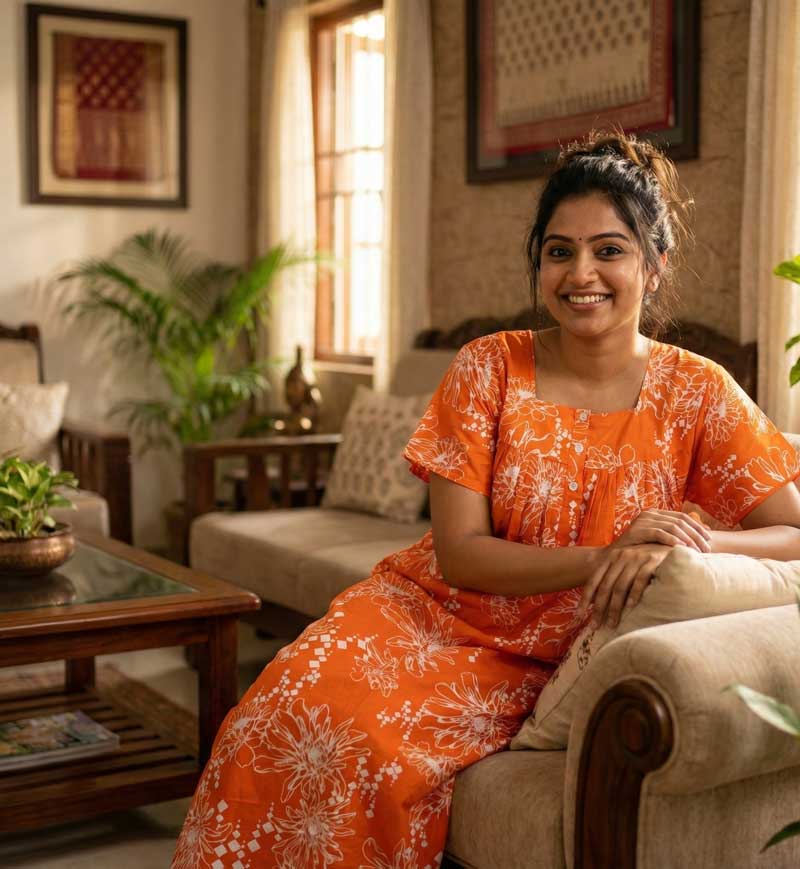 ₹489Comfortable Cotton Nighty With Buttons, 57 Inches Long – Light Orange