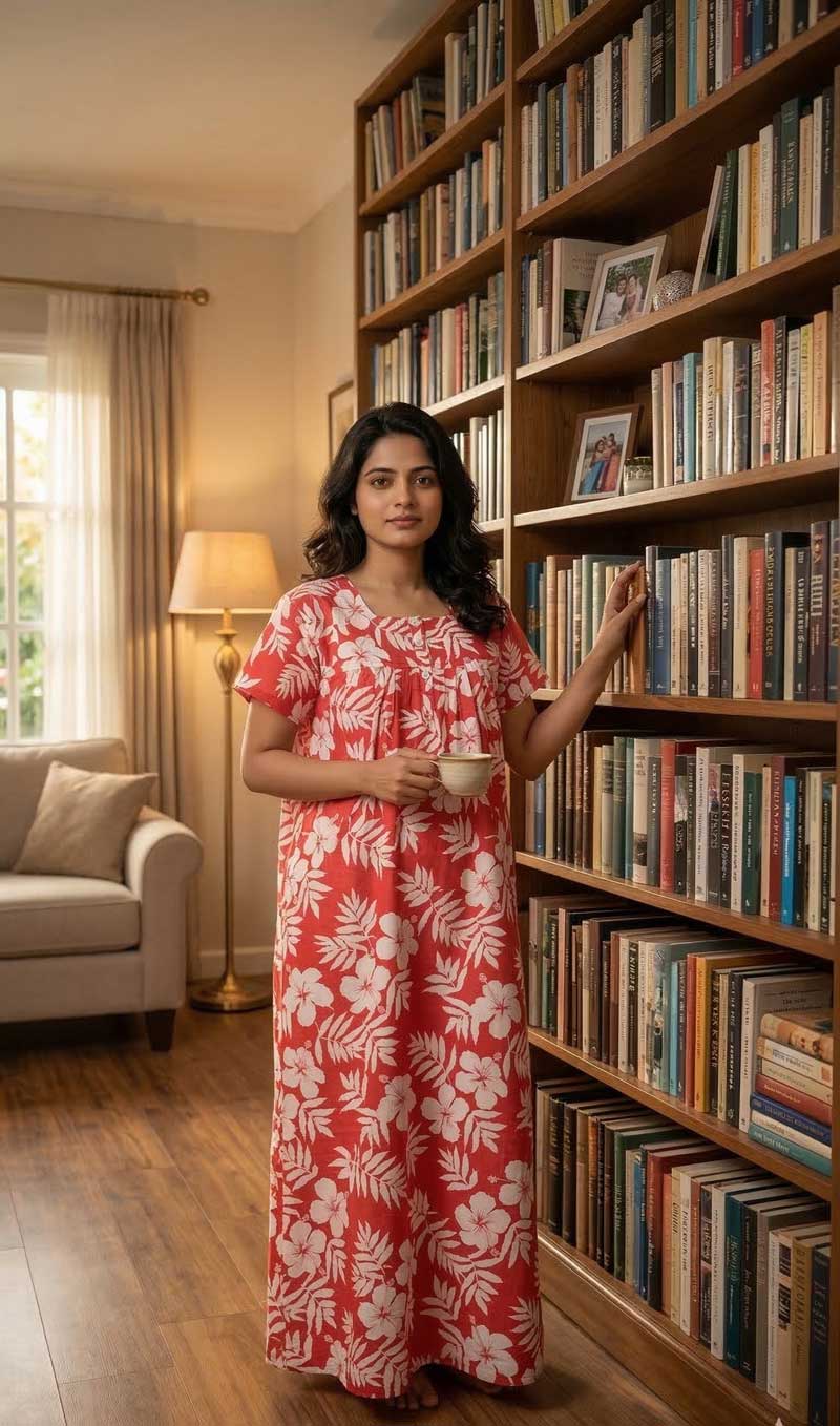 This nighty can be hand washed or a normal machine washed with cold water. Please make sure to dry the nighty in a light shade away from direct sunlight.