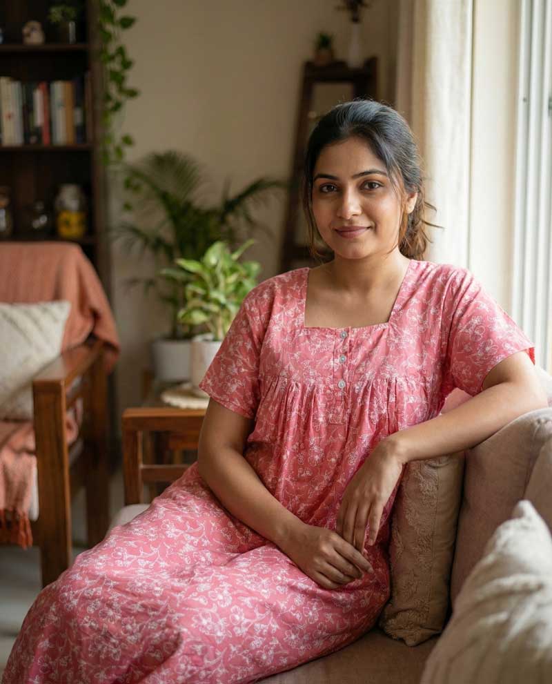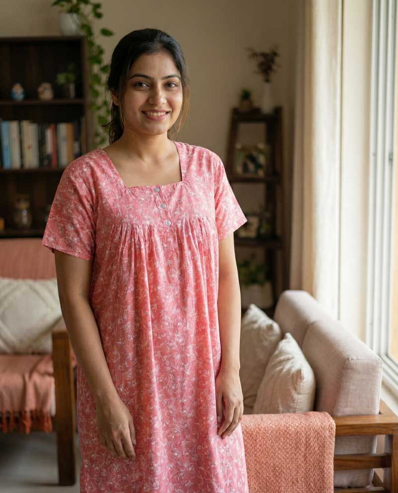 Comfortable Traditional Cotton Nighty – 55 inches long