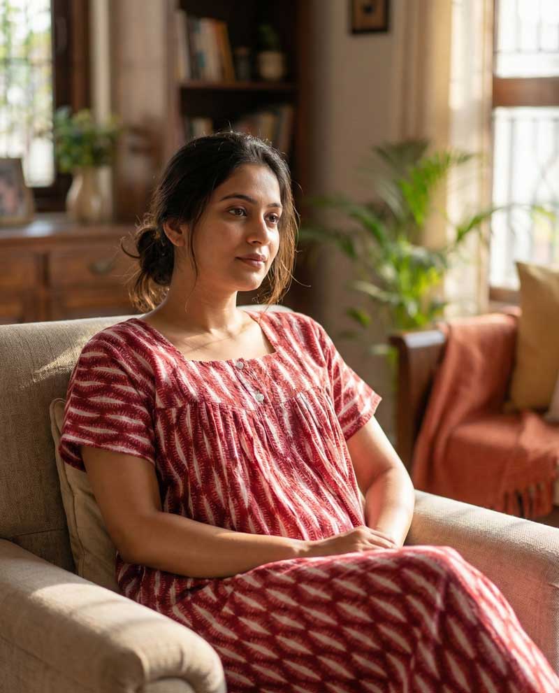 ₹489Comfortable Cotton Nighty With Buttons, 57 Inches Long – Rose