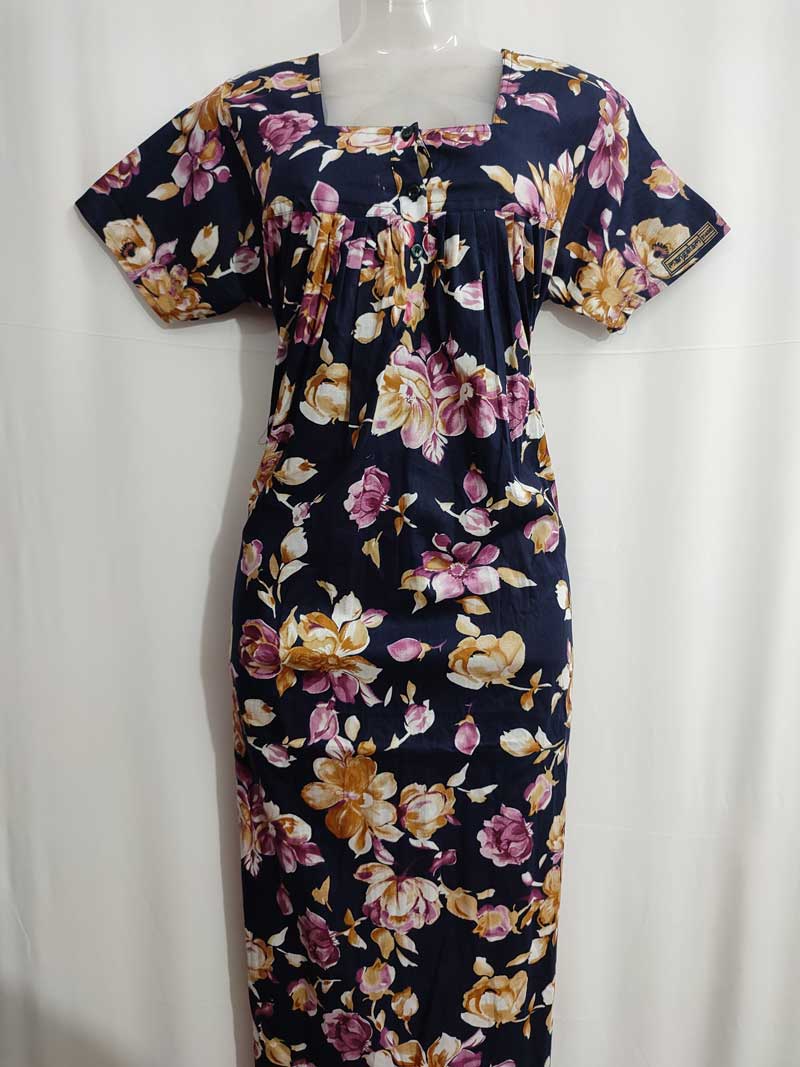 Cotton Nighty With Buttons, 57 Inches Long