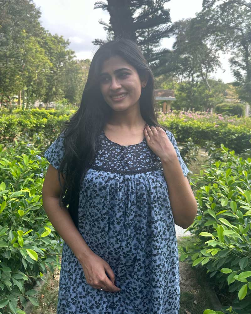 This nighty can be hand washed or a normal machine washed with cold water. Please make sure to dry the nighty in a light shade away from direct sunlight.