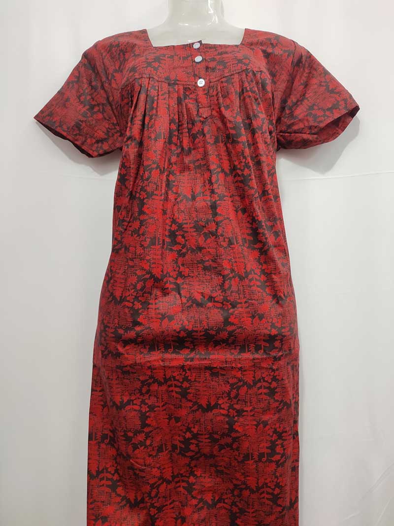 Premium Quality Cambric Cotton Nighty With Buttons -55 Inches Long – Red