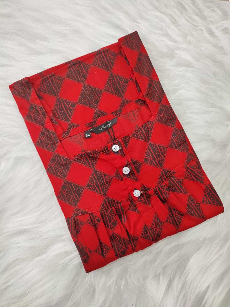 Front Open Cotton Nighty With Buttons, 55 Inches Long – Red+ Black