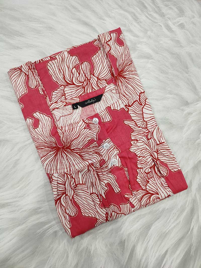 Collar Neck Cotton Nighty With Buttons – 55 inches long – Red