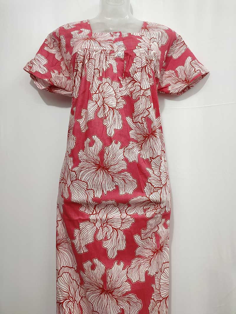 Front Open Cotton Nighty With Buttons, 55 Inches Long – Rose