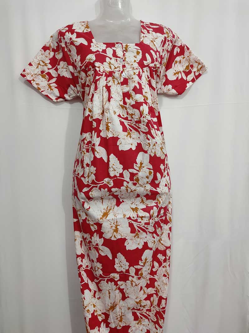 Collar Neck Cotton Nighty With Buttons – 55 inches long – Red