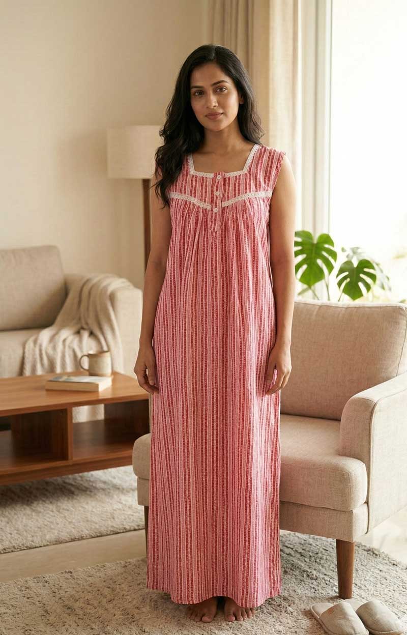 Comfortable Traditional Cotton Nighty, 57 Inches Long
