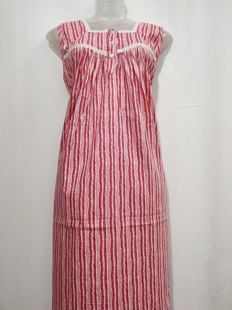 Cotton Nighty With Buttons, 57 Inches Long
