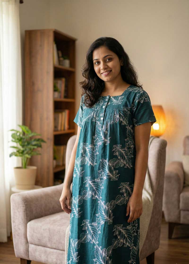 Comfortable Traditional Cotton Nighty – 55 inches long