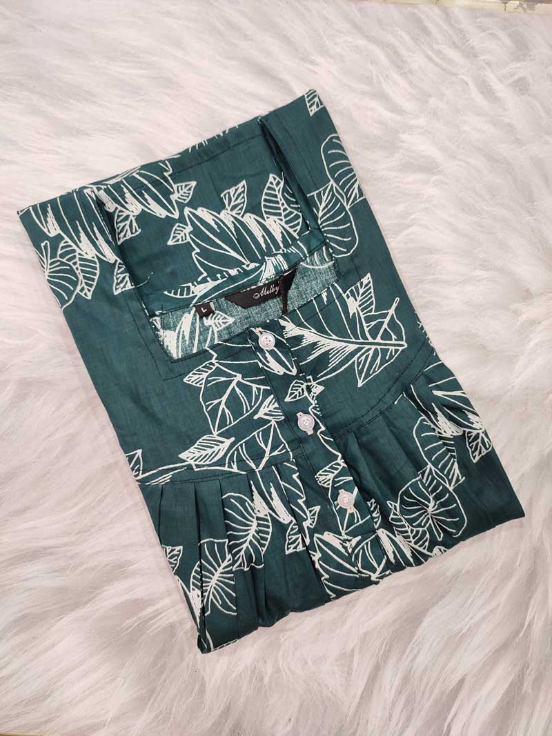 Comfortable Cotton Nighty With Buttons -57 Inches Long- Green