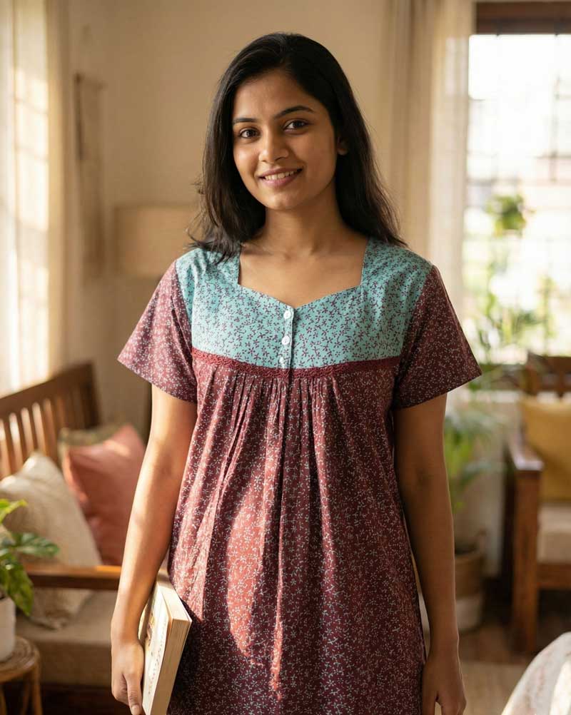 Pure Cotton Pleated Nighty