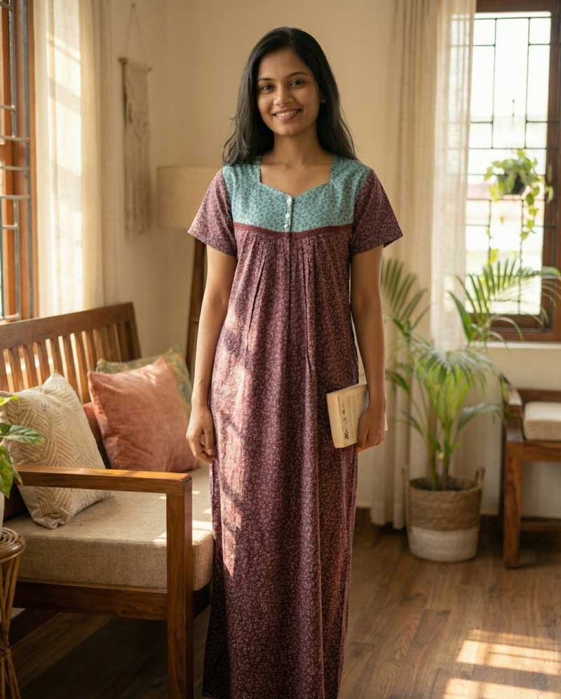 ₹449Comfortable cotton nighty With Buttons -55 inches long- Purple