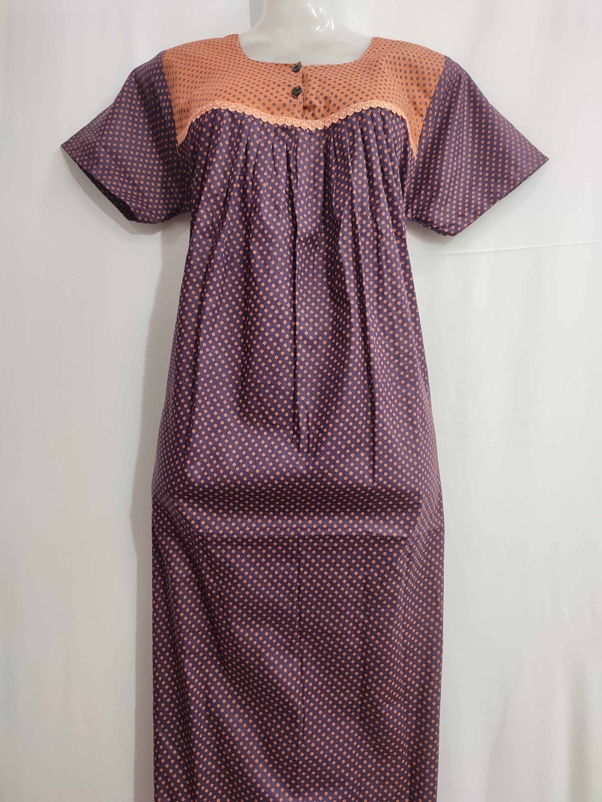 Premium Cambric Cotton Nighty With Long Sleeves – Buttons Type