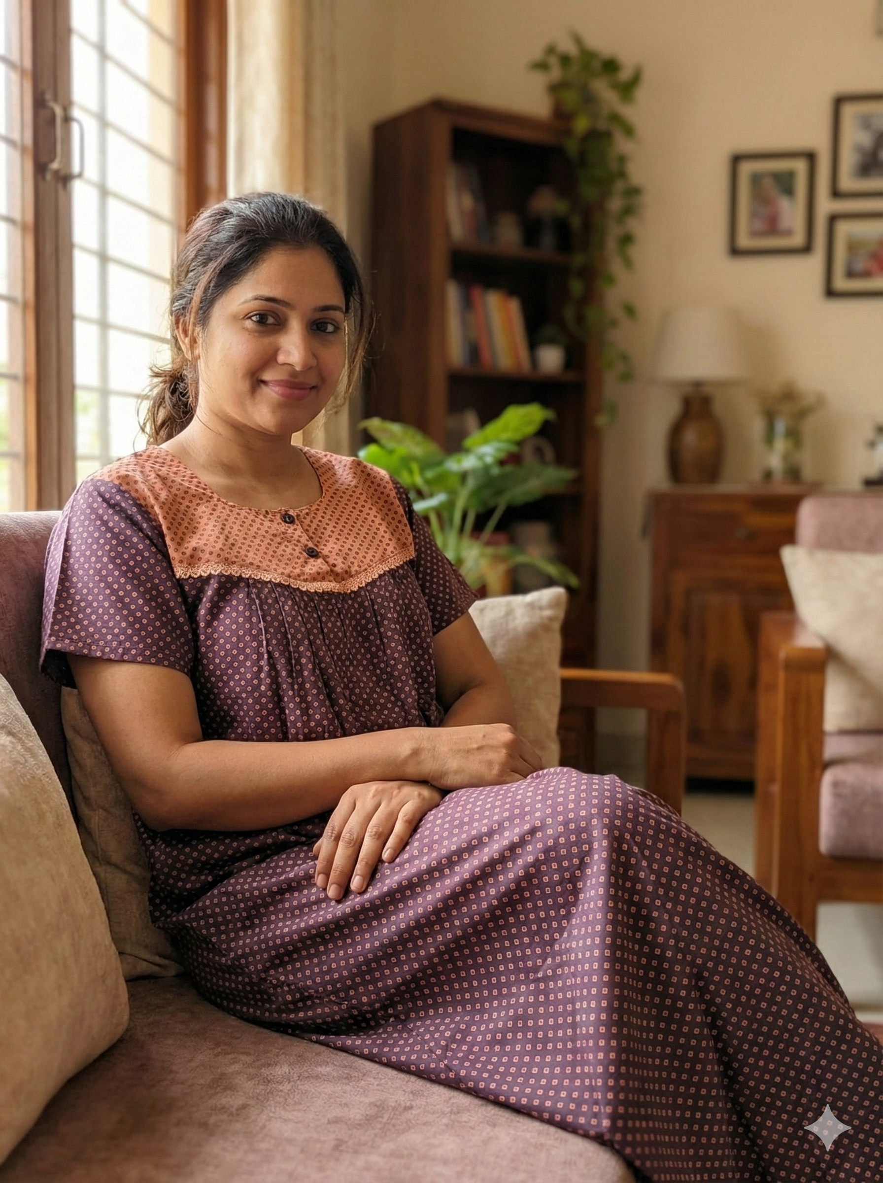 ₹489Comfortable Cotton Nighty With Buttons, 57 Inches Long – Rose