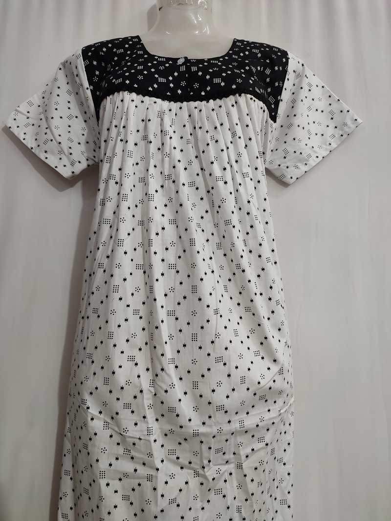 Front Open Cotton Nighty With Buttons, 55 Inches Long - White Original price was: ₹499.Current price is: ₹449.