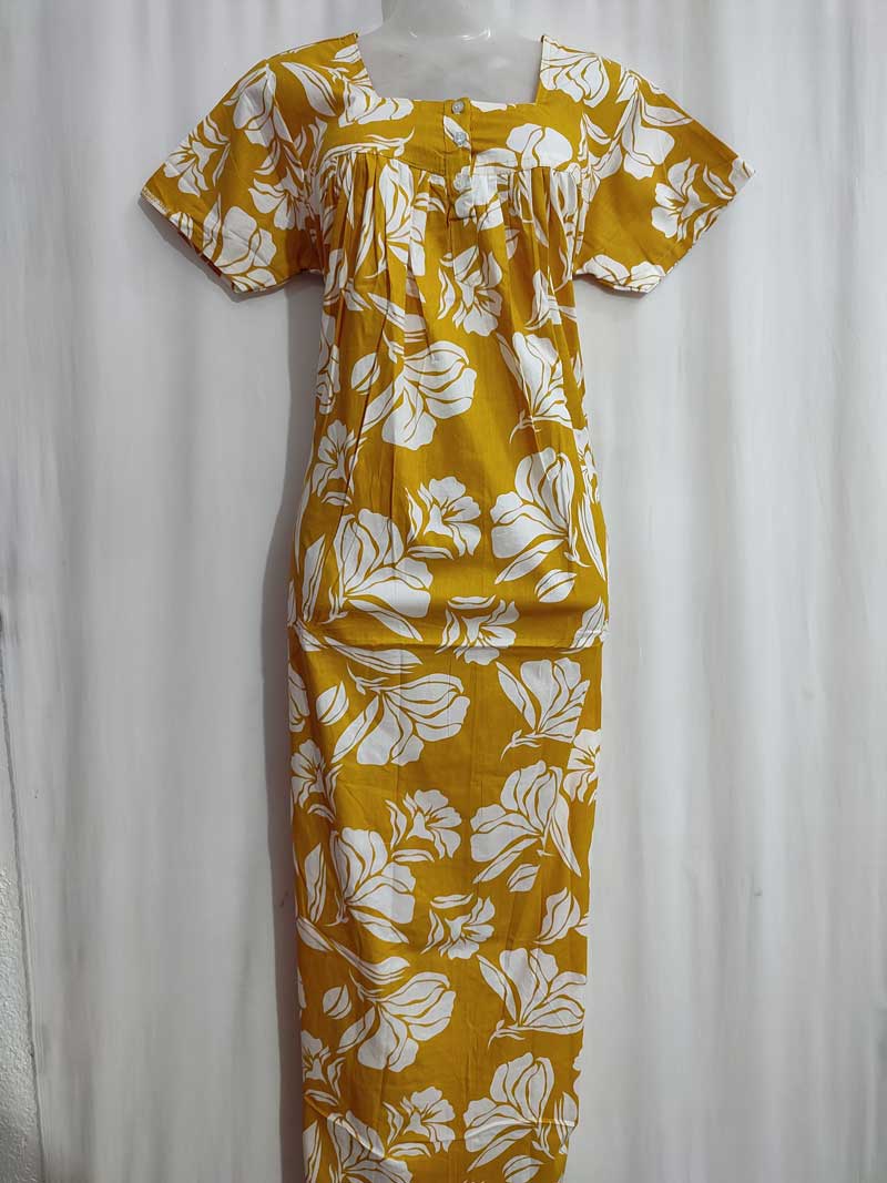 Front Open Cotton Nighty With Buttons, 55 Inches Long – Yellow