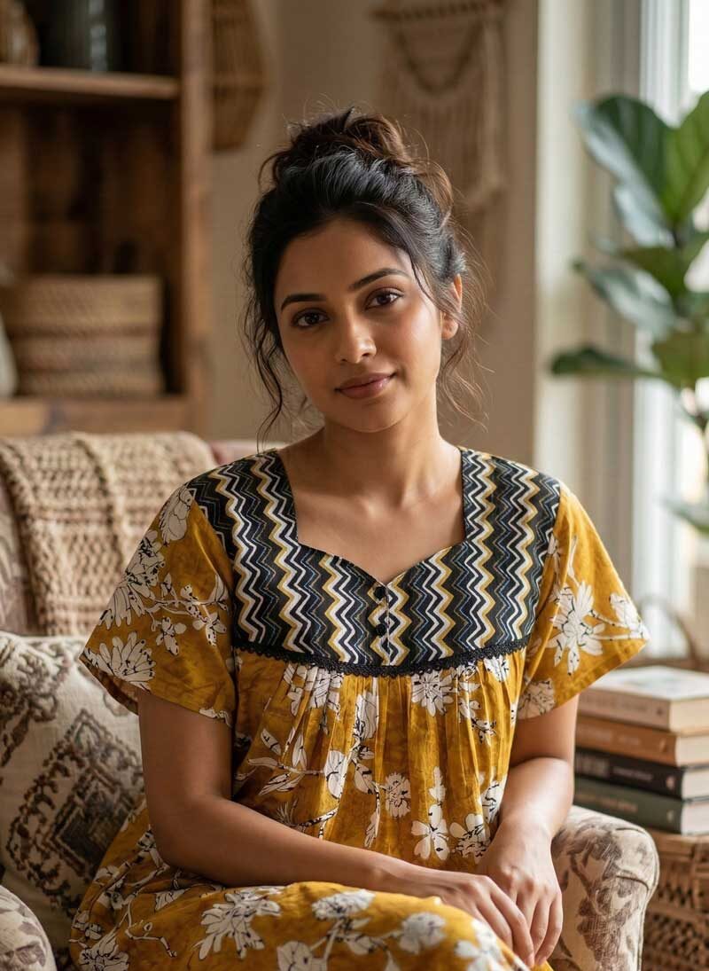 This nighty can be hand washed or a normal machine washed with cold water. Please make sure to dry the nighty in a light shade away from direct sunlight.