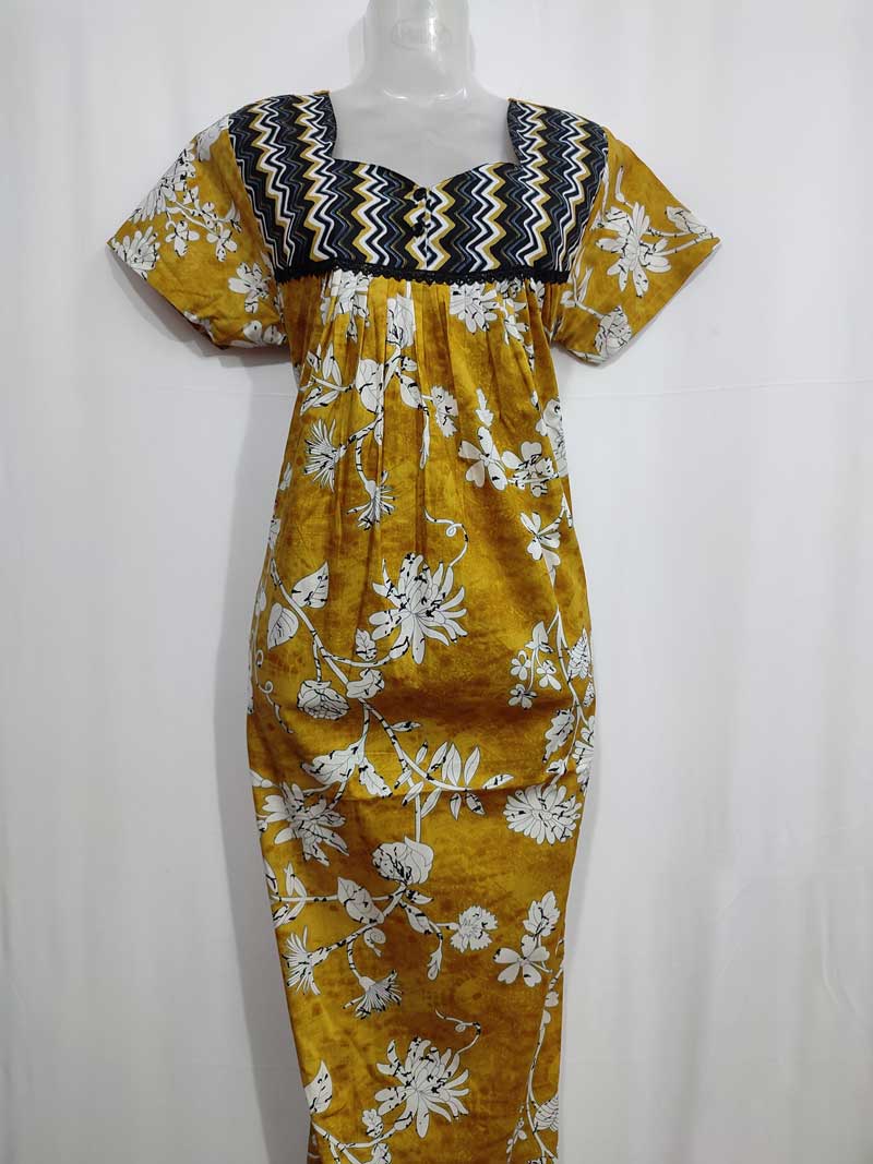 Front Open Cotton Nighty With Buttons, 55 Inches Long- Yellow