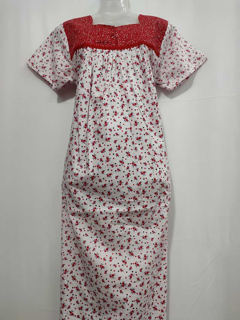Comfortable Cambric Cotton Nighty With Buttons -55 Inches Long