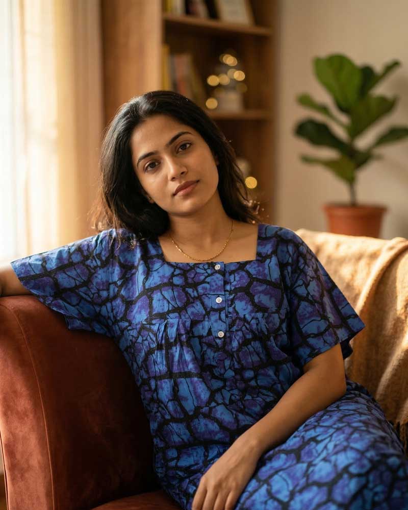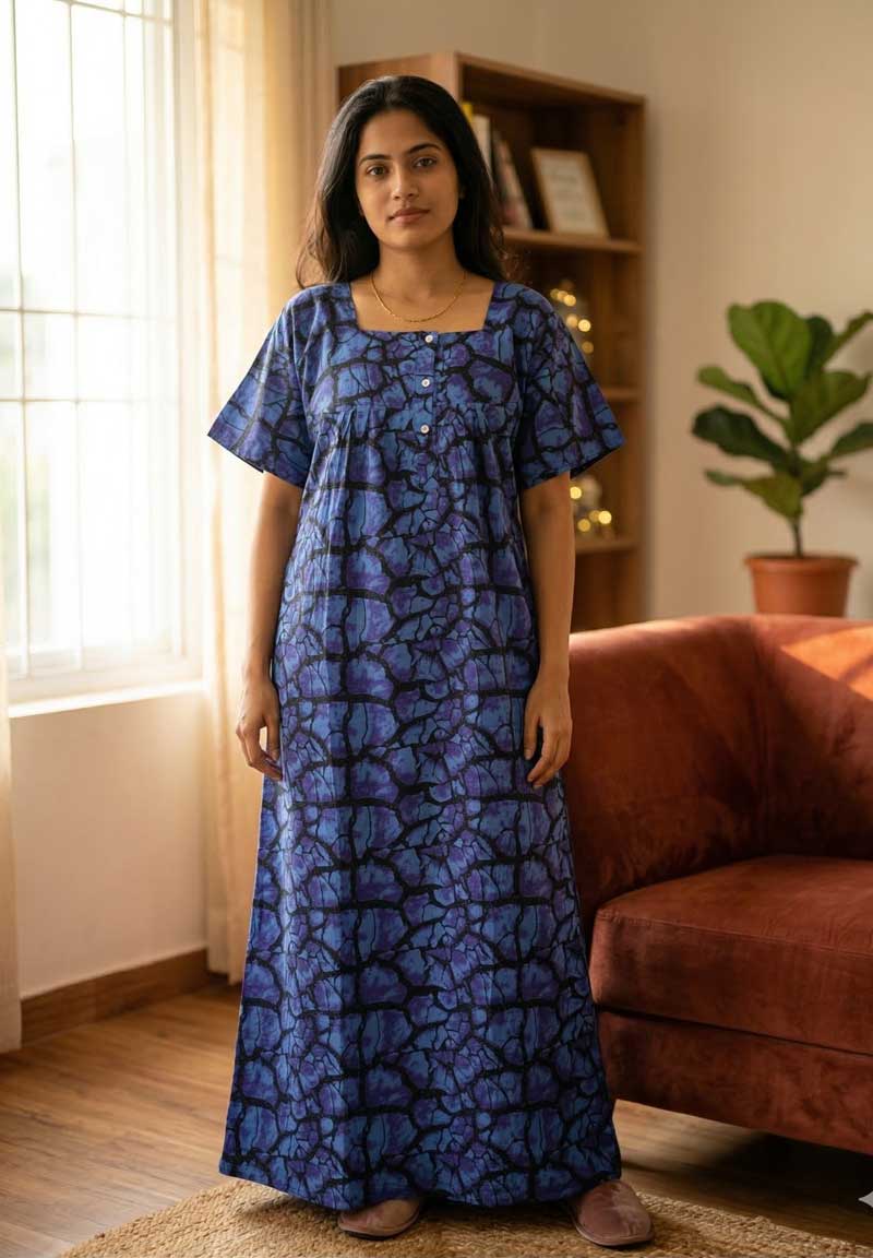 Comfortable Churidar Model cambric cotton nighty -55 inches long – Dark Blue