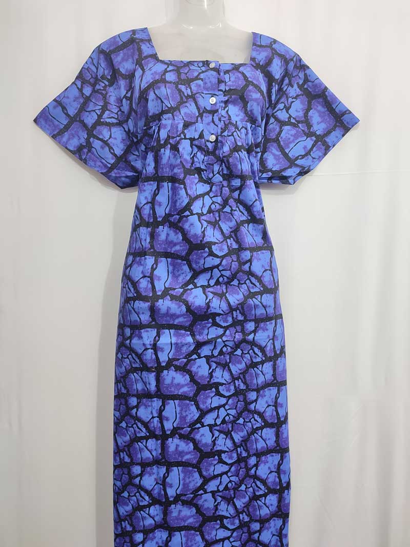 Front Open Cotton Nighty With Buttons, 57 Inches Long – Blue