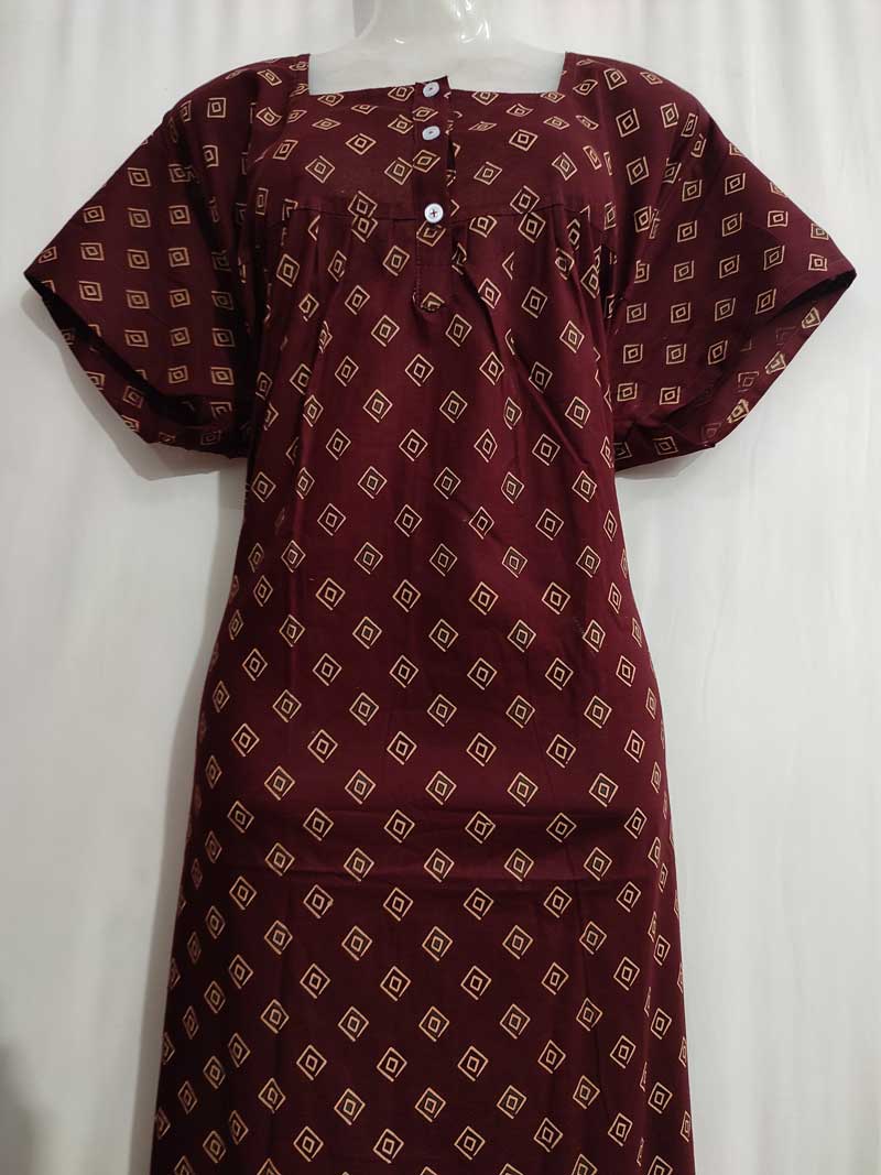 Premium Cambric Cotton Nighty With Long Sleeves – Buttons Type – Maroon
