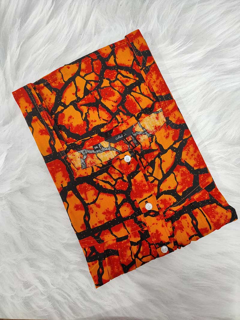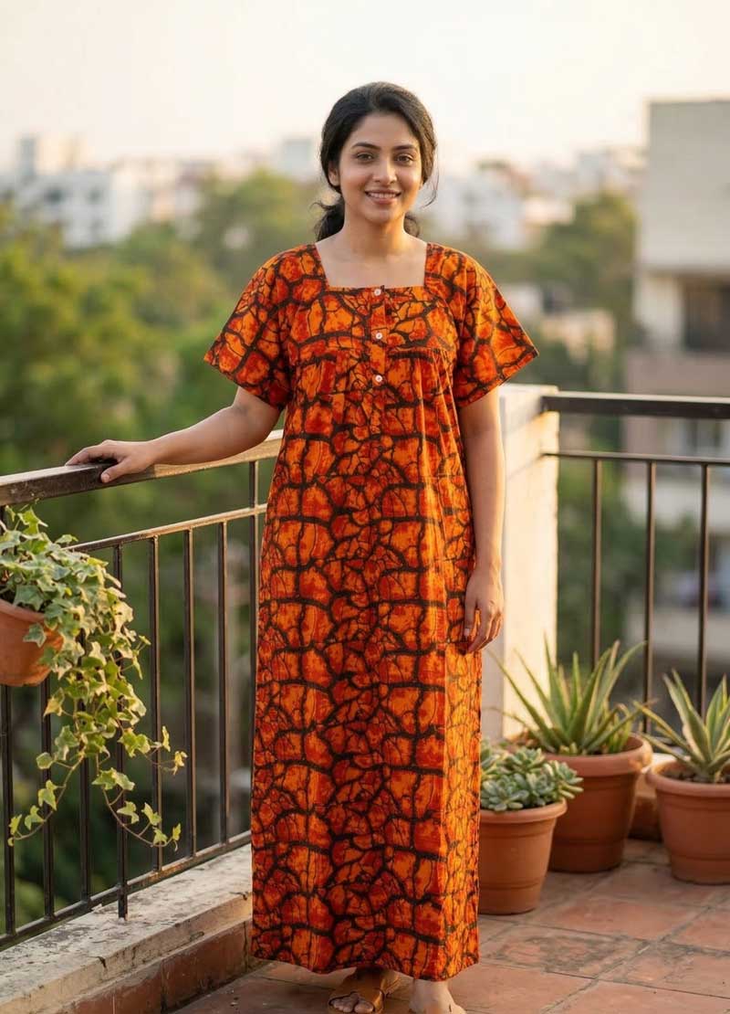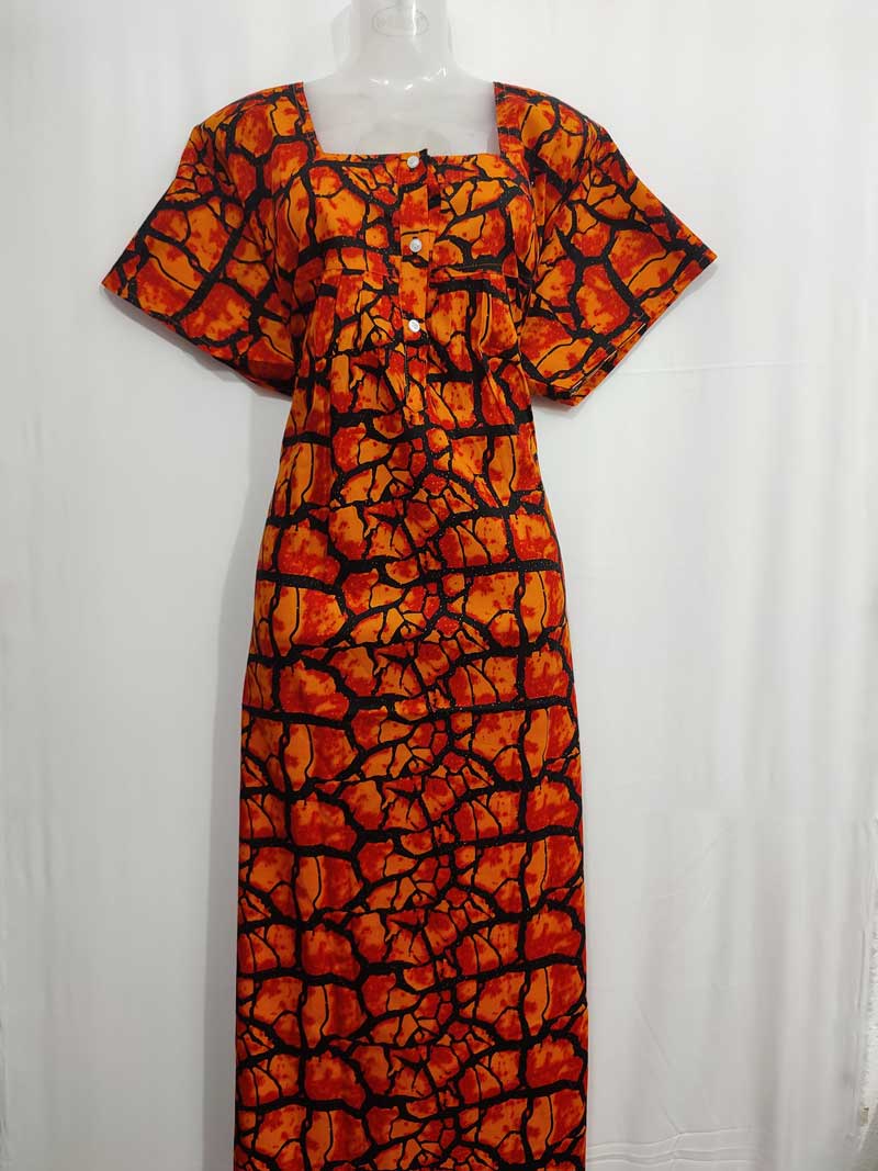 Front Open Cotton Nighty With Buttons, 57 Inches Long – Orange