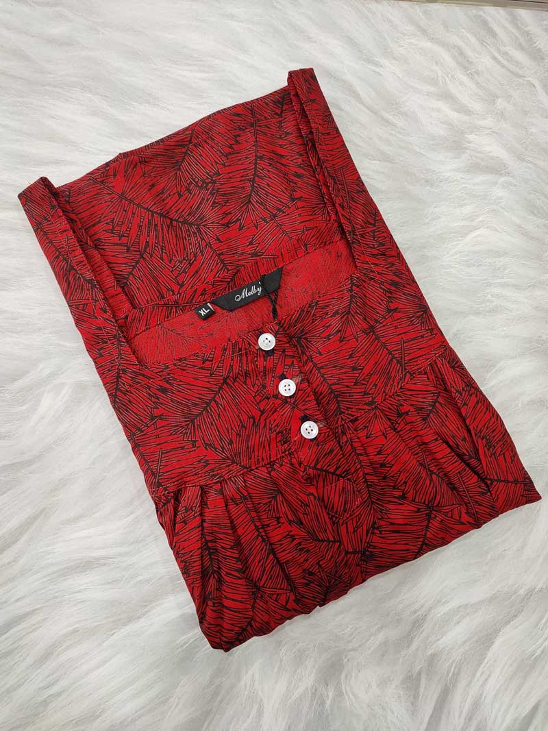 Front Open Cotton Nighty With Buttons, 57 Inches Long – Red+ Black
