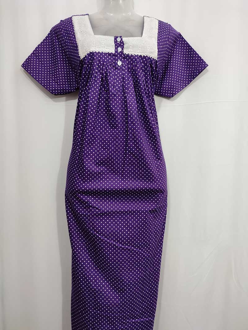 Front Open Cotton Nighty With Buttons, Hacoba Yoke, 55 Inches – Violet
