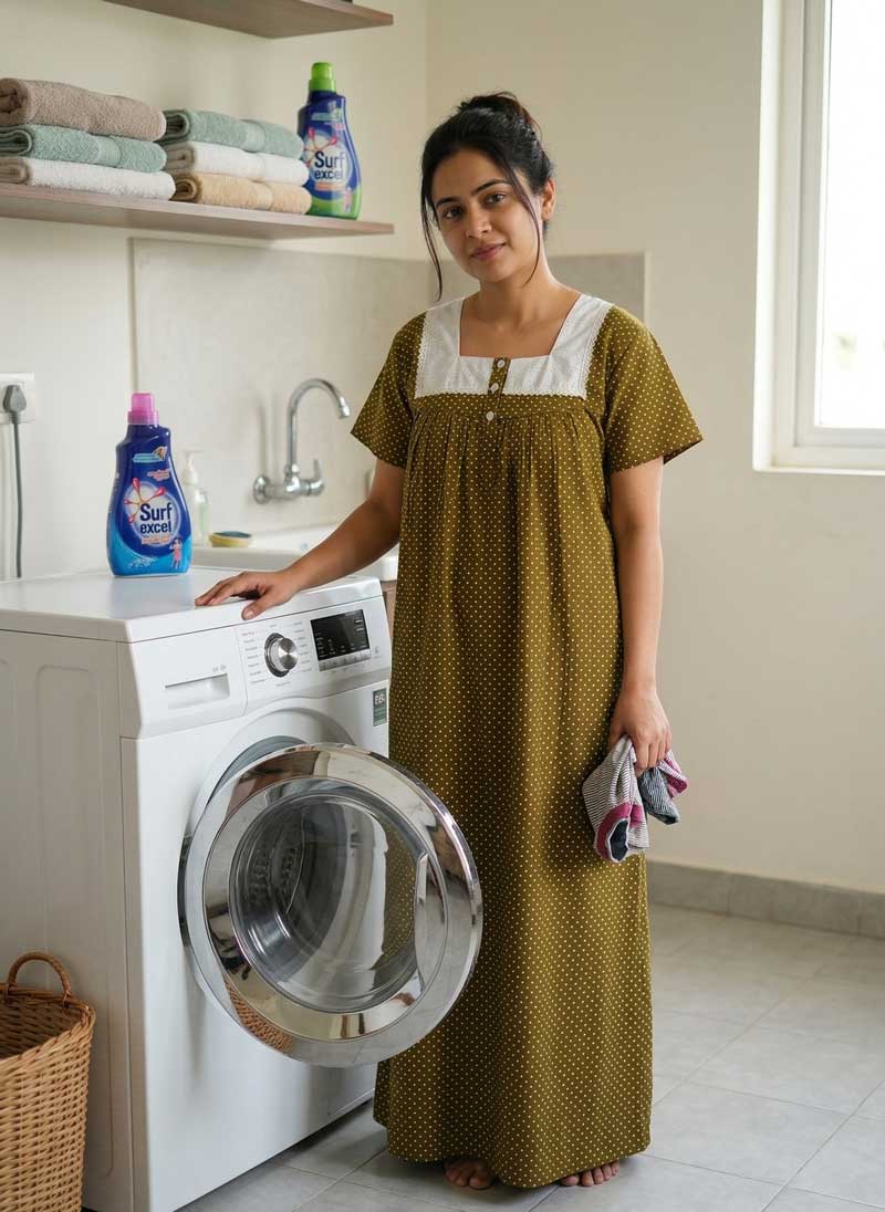 This nighty can be hand washed or a normal machine washed with cold water. Please make sure to dry the nighty in a light shade away from direct sunlight.