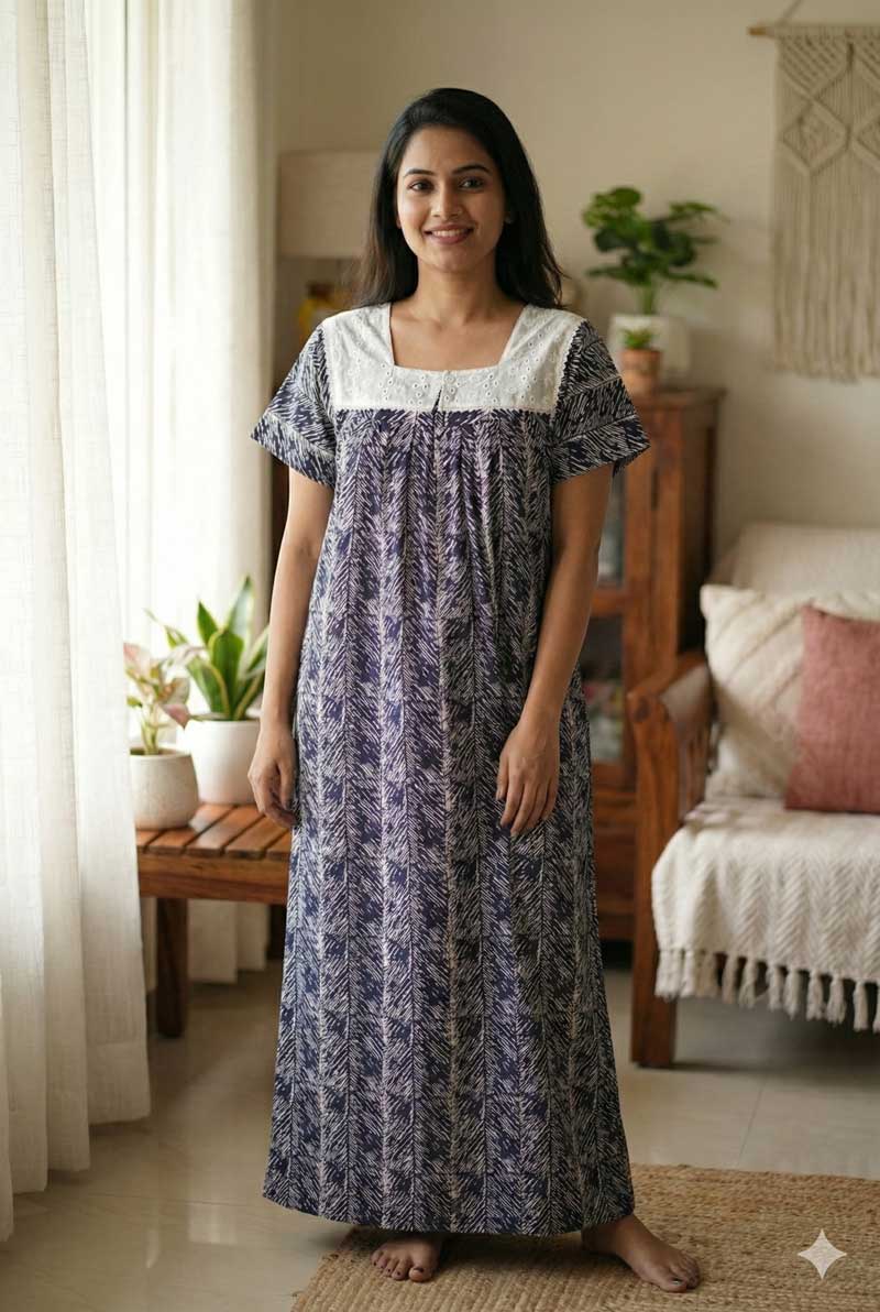 Comfortable Traditional Cotton Nighty – 55 inches long