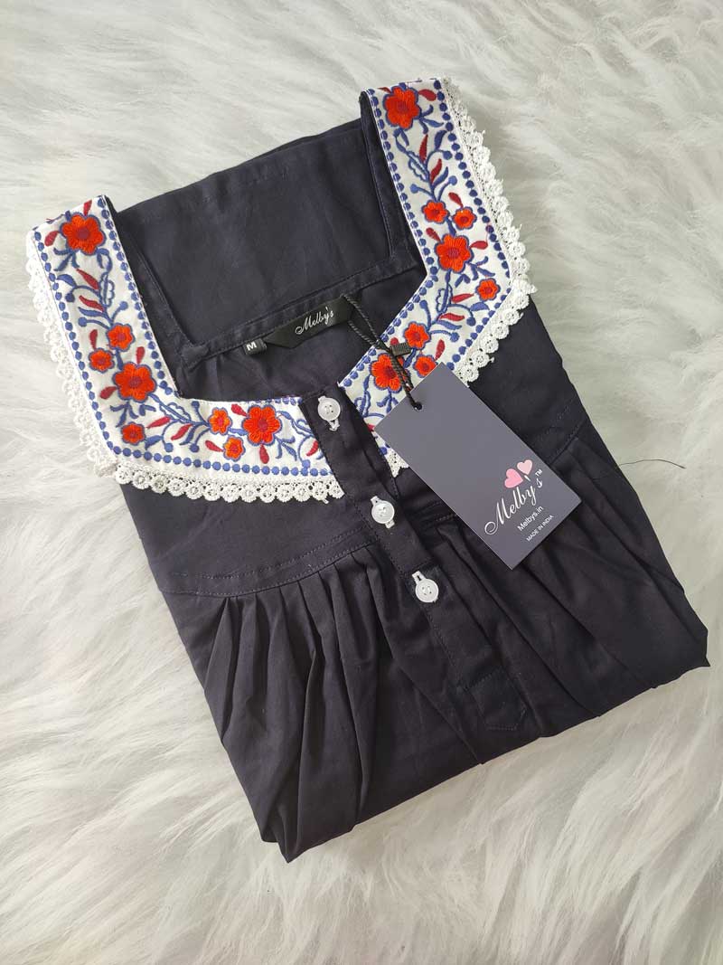 This nighty can be hand washed or a normal machine washed with cold water. Please make sure to dry the nighty in a light shade away from direct sunlight.