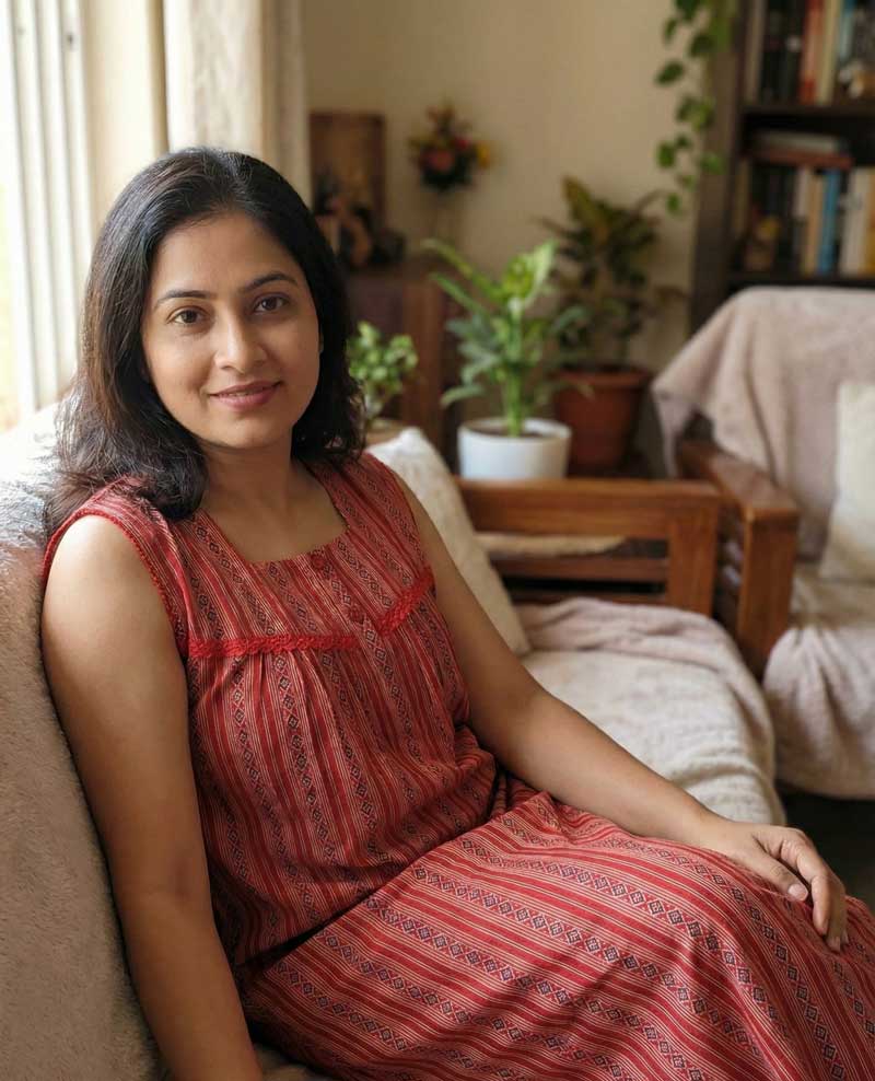 Premium Cambric Cotton Nighty With Long Sleeves – Buttons Type