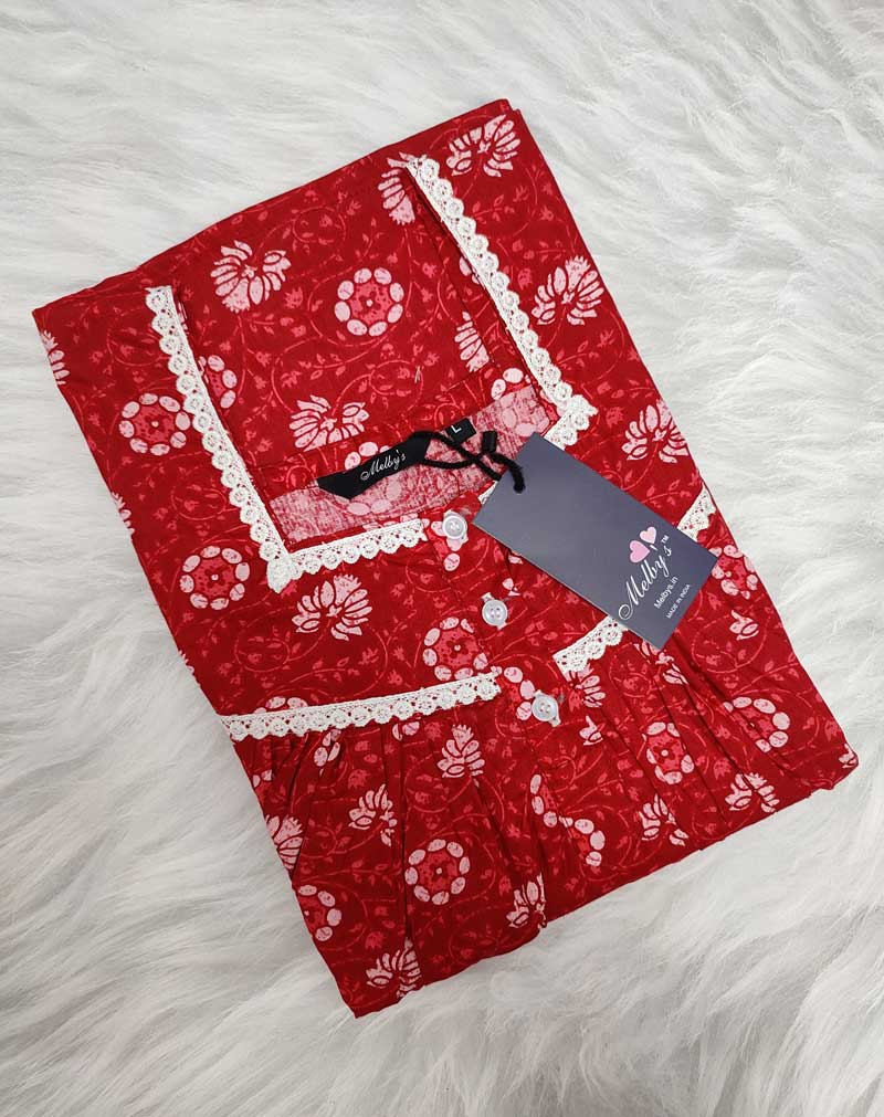 Churidar Model Nighty With Buttons -55 inches long – Red