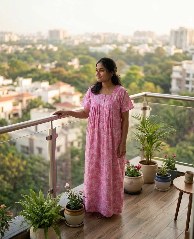 Pure Cotton Pleated Nighty