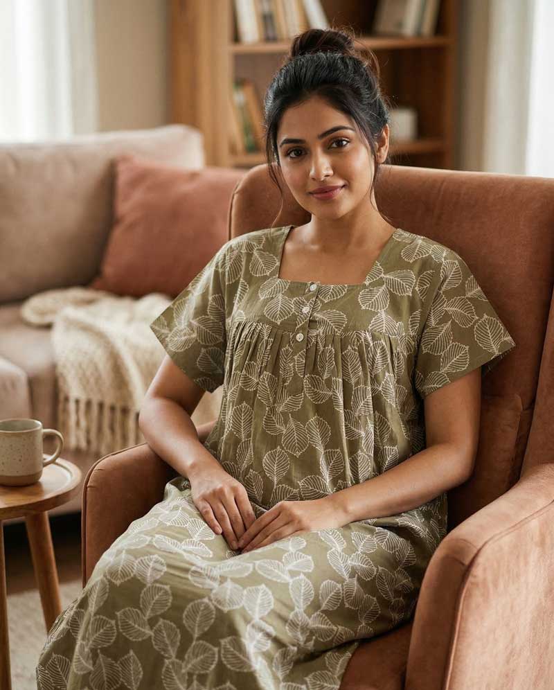 Premium Quality Cotton Kaftan nighty – 55 Inches Length – Green