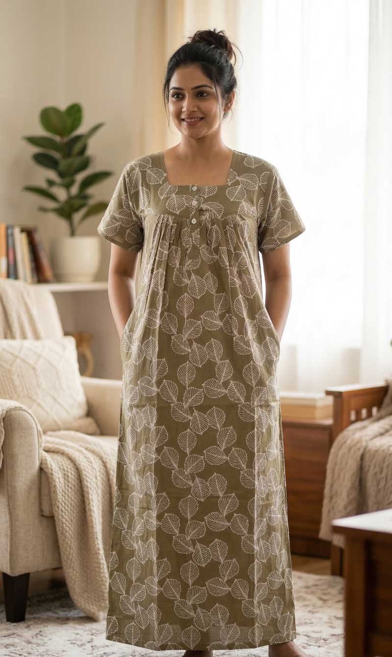 Comfortable Traditional Cotton Nighty, 57 Inches Long – Brown