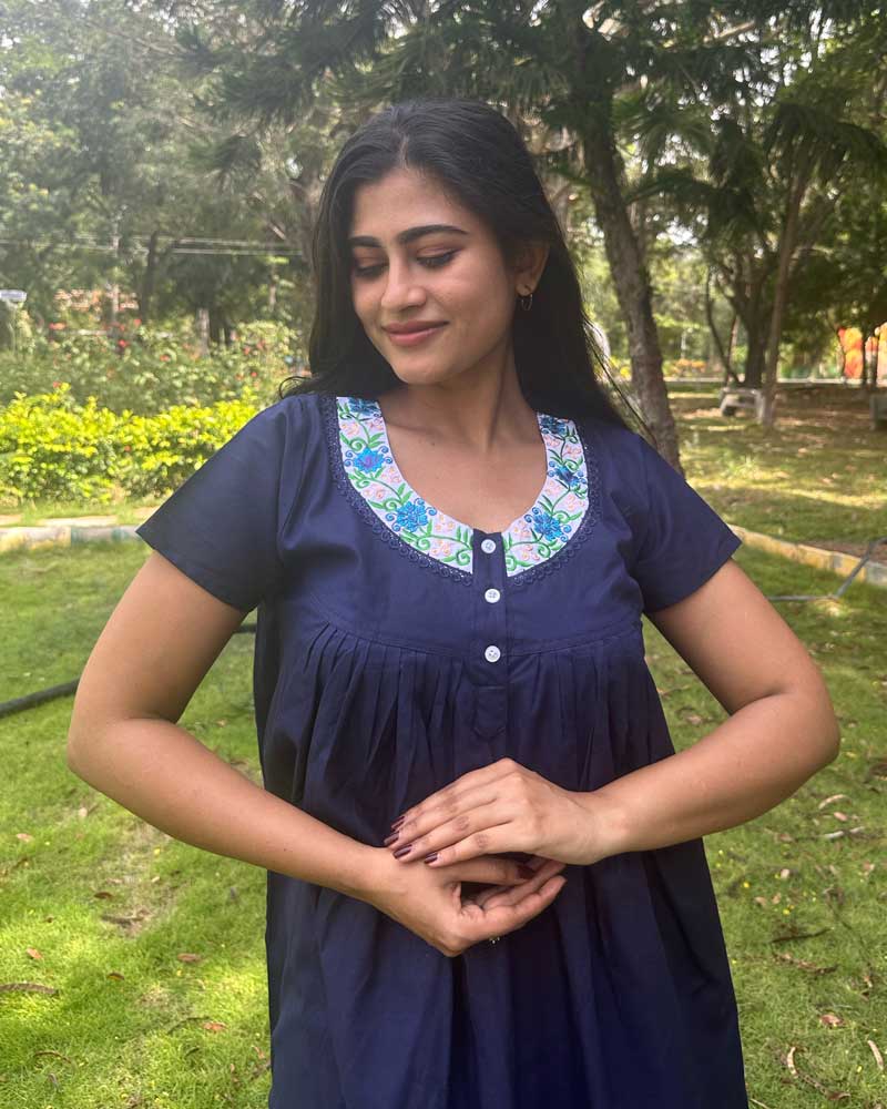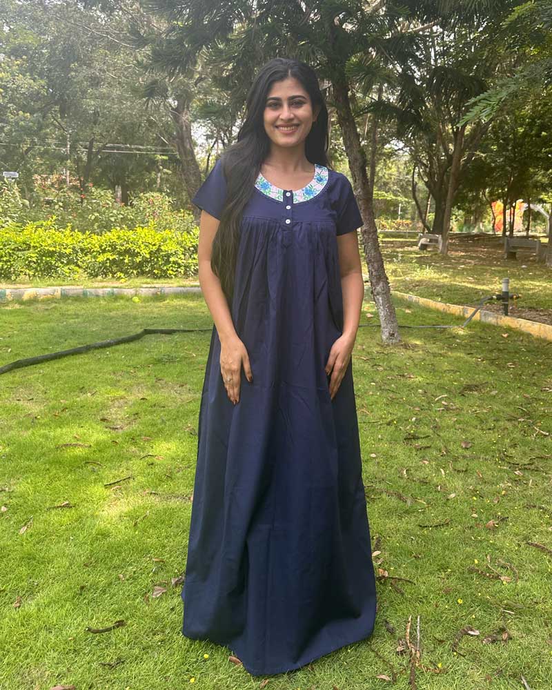 This nighty can be hand washed or a normal machine washed with cold water. Please make sure to dry the nighty in a light shade away from direct sunlight.