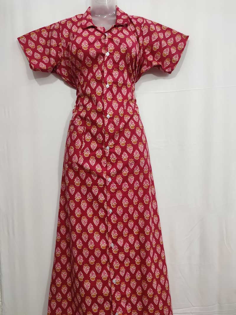 Comfortable Frock Model Cotton Nighty With Zip - 55 Inches Long - Rose Original price was: ₹599.Current price is: ₹549.