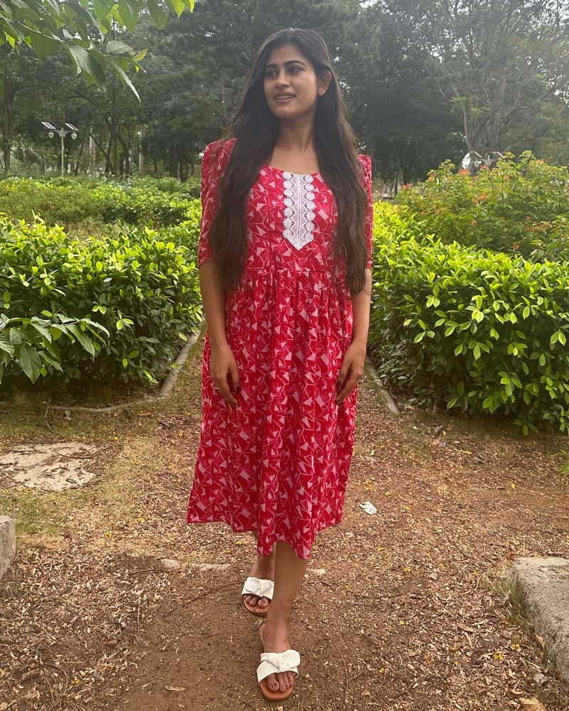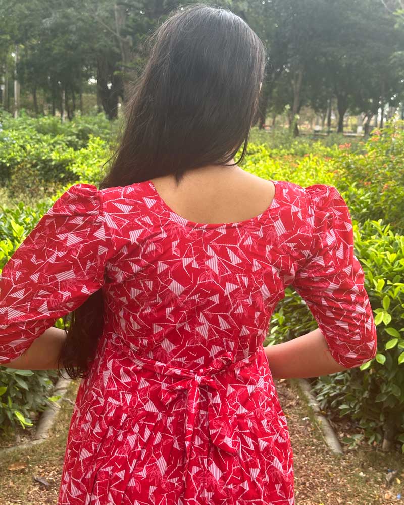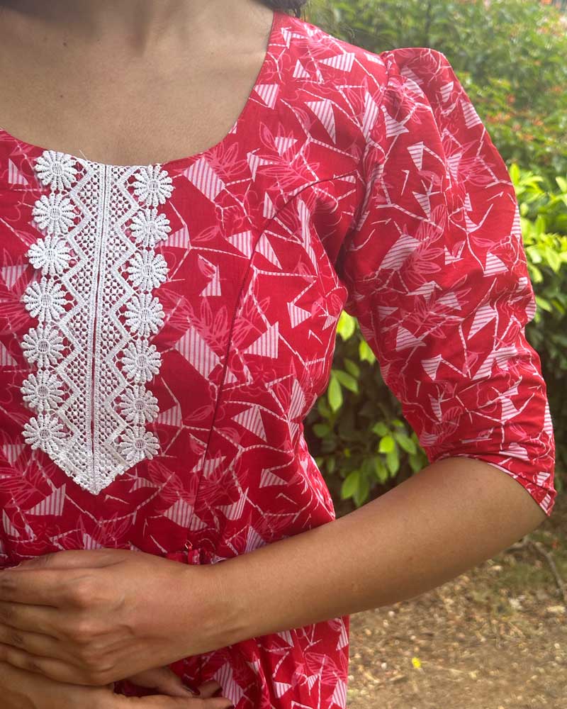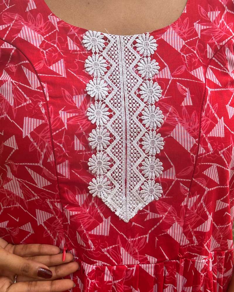 Pure Cotton Feeding Nighty With Side Zips For Mothers – Frock Type – Red